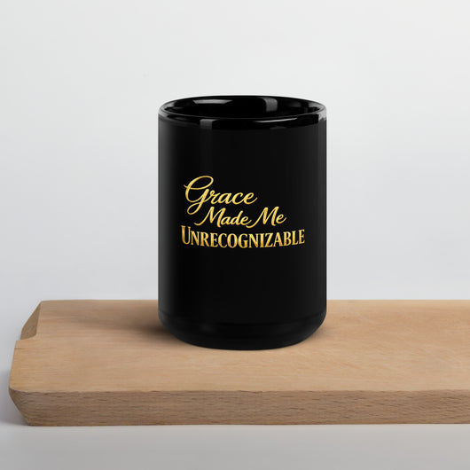 Grace Made Me Unrecognizable Mug Black & Gold Faith Inspiration Cup Transformation Gift Luxury Motivational Mug